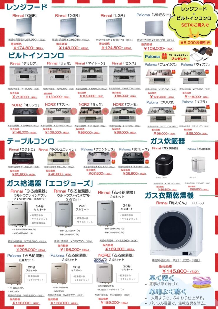給湯器・乾燥機まで。